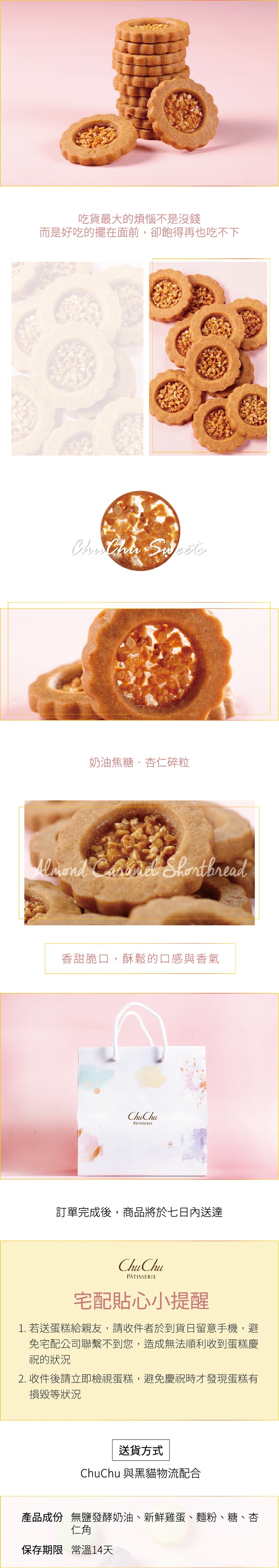 ※ 商品可宅配,餅乾有碎裂風險,需要自行考慮風險,無法因此原因退換貨。