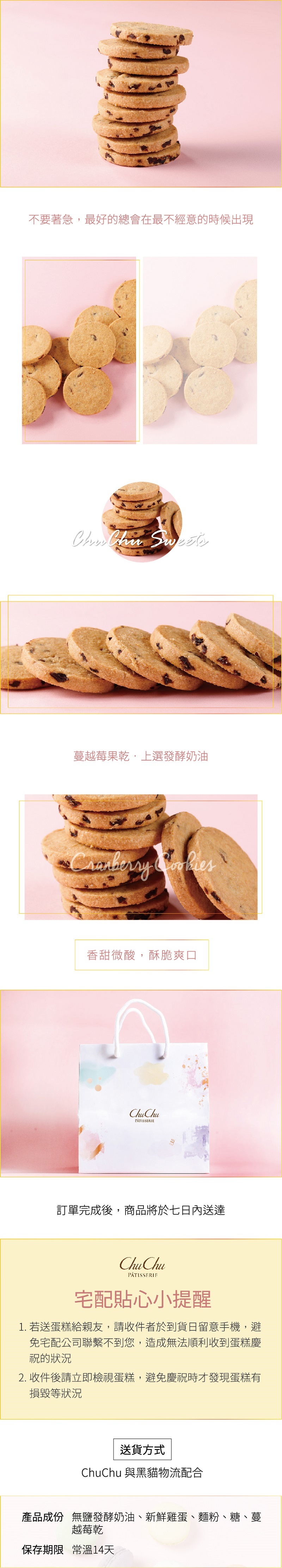 ※ 商品可宅配,餅乾有碎裂風險,需要自行考慮風險,無法因此原因退換貨。
